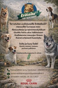 Tämän vuoden erämessuille yleisöä kiinnostavia koirien toimintanäytöksiä ja koiraesittelyjä oli lisätty entisestään. Valtakunnallisen vuoden eräkoiran valinta on kuulunut Erätaika-messujen ohjelmaan koko messuhistorian ajan. Tällä kertaa järjestäjien edustajista ja Suomen Kennelliiton edustajista koottu raati valitsi Vuoden Eräkoirasi karjalankarhukoira Kuohukorven Missin. Koiran omistaa Tommi Ruokosuo Anjalasta. Missin ansiolista on komea. Koira on voittanut rodun mestaruuden, eli hirvikuninkaan tittelin kolme kertaa ja narttujen kuningatar-kilpailun kaksi kertaa. Lisäksi koiralla on lukuisia muita arvokkaita voittoja.